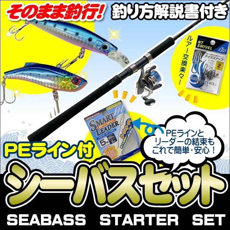 つり具 ten ec本店 つり具tenシーバス入門セット peライン付 シーバスロッド スピニングリールpeライン糸巻き済 簡単リーダー ルアー3点 他 シーバス 初心者応援 全8点シーバス直行セット